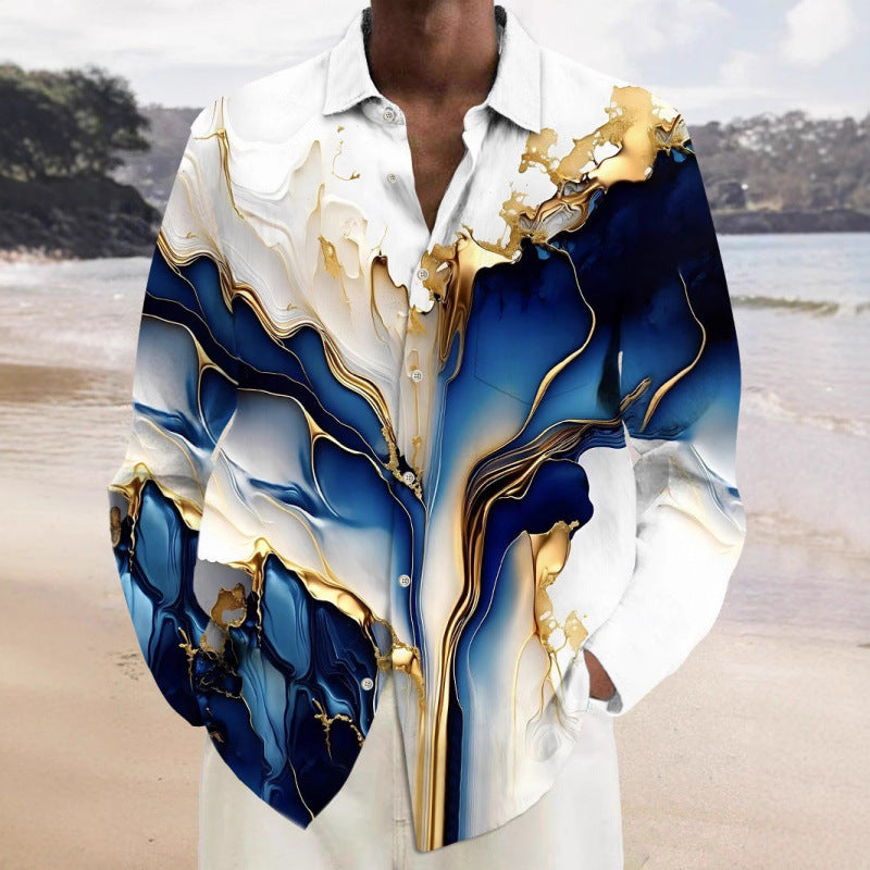 Men's Shirt Multi-color Pattern Element Long Sleeve Top